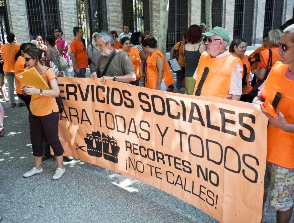 La crisis económica de 2008 y los recortes en políticas públicas movilizó a la ciudadanía que creó las distintas Mareas Verde, Blanca, etc. y la Marea Naranja. Ahí nace el Espacio de Derechos Sociales, Espacio de Información, Orientación y de Defensa de los Derechos Sociales, para que los “usuarios” de esos servicios se conviertan en “sujetos activos de sus derechos”.